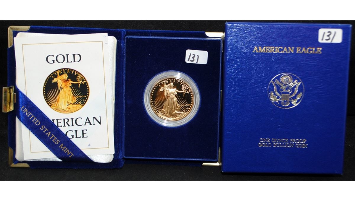 1986 ONE OUNCE PROOF GOLD AMERICAN EAGLE WITH ORIGINAL BOX AND CERTIFICATE OF AUTHENTICITY