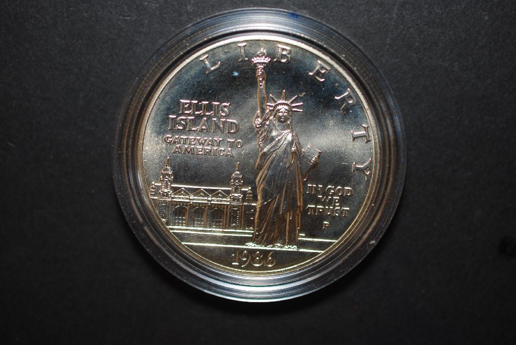 1986-P US Liberty Ellis Island Commemorative Silver $1; UNC; .900 Fine .86 Oz.; EST. $35-40