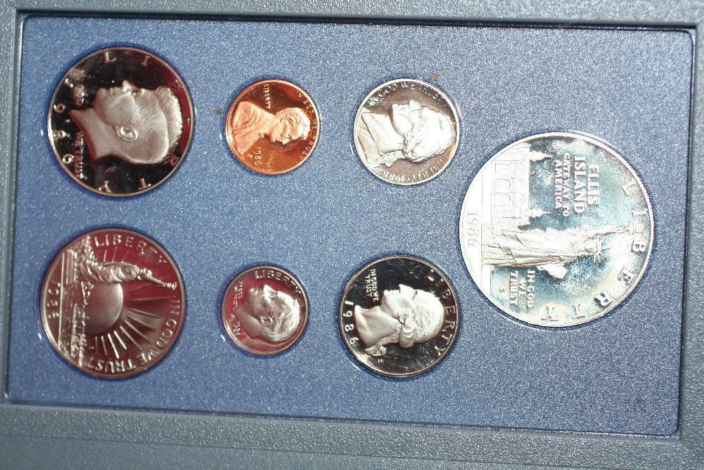 1986-P US Mint Prestige Proof Set W/Commerative Ellis Island Half Dollar & Ellis Island $1