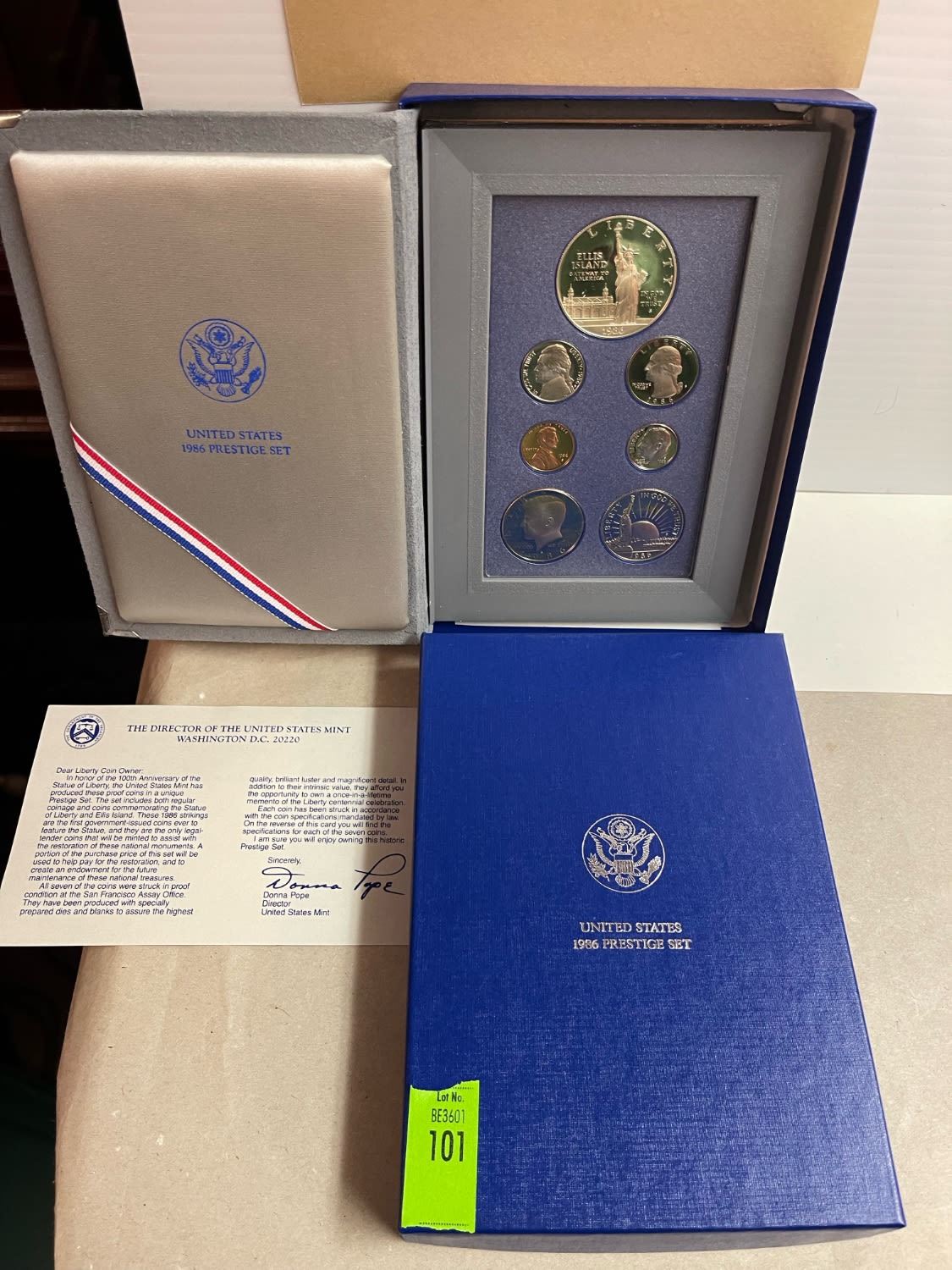 1986 Prestige Set Proof, paperwork included.