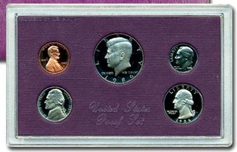 One 1986 Proof Coin Set. The paper box cover has some wear and scuffs.