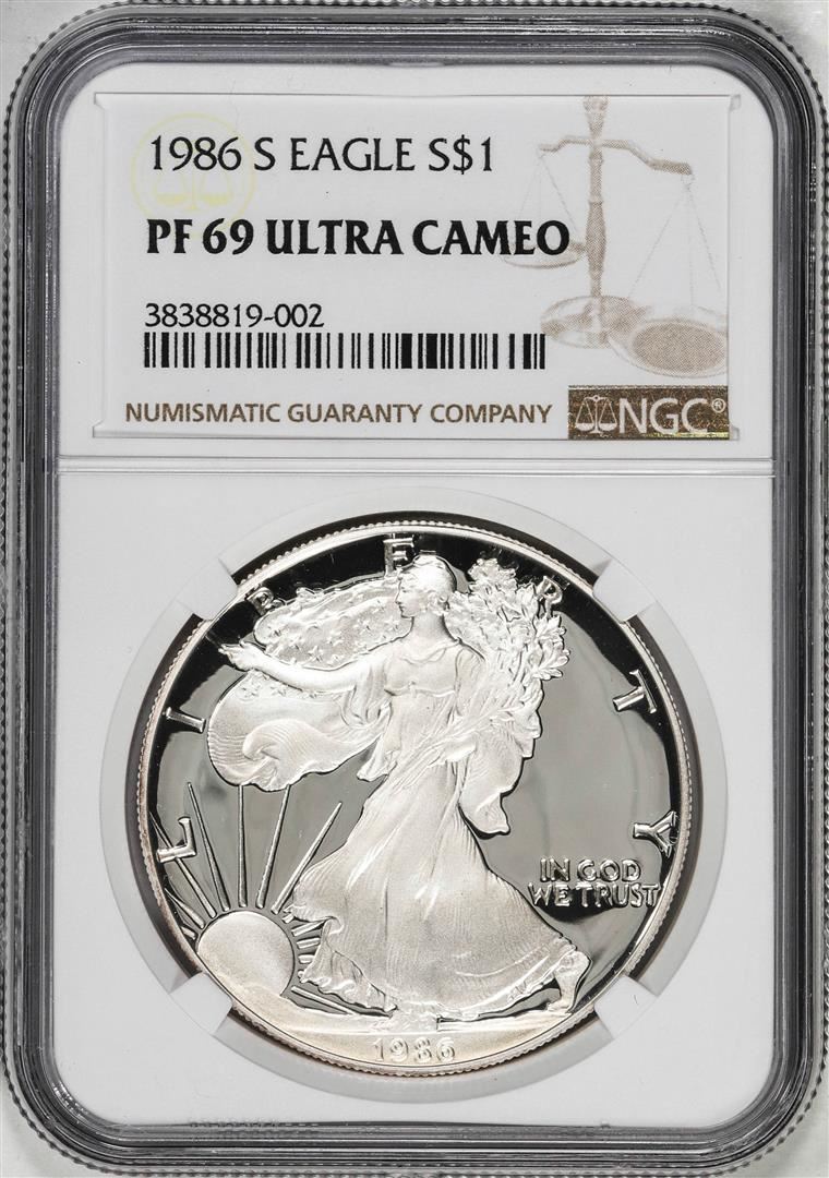 1986-S $1 Proof American Silver Eagle Coin NGC PF69 Ultra Cameo