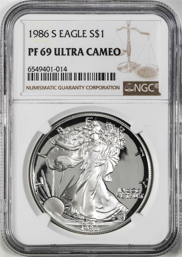 1986-S $1 Proof American Silver Eagle Coin NGC PF69 Ultra Cameo