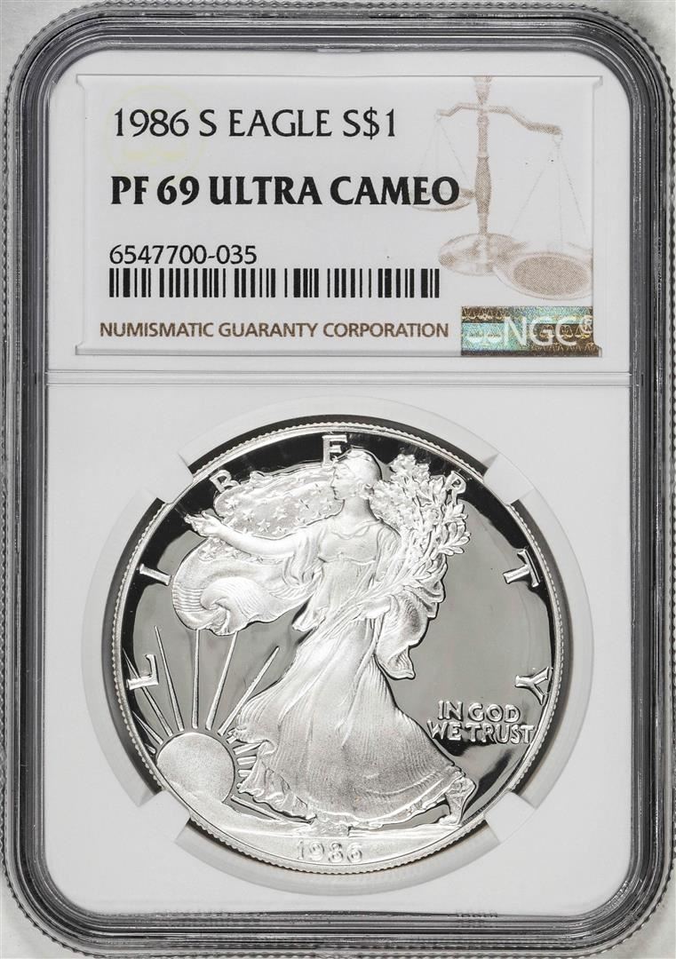1986-S $1 Proof American Silver Eagle Coin NGC PF69 Ultra Cameo