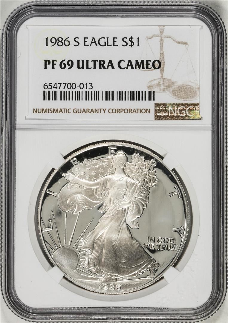 1986-S $1 Proof American Silver Eagle Coin NGC PF69 Ultra Cameo