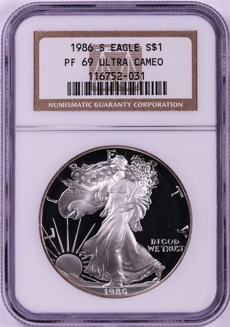 1986-S $1 Proof American Silver Eagle Coins NGC PF69 Ultra Cameo