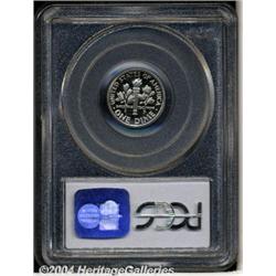 1986-S 10C PR70 Deep Cameo PCGS. The exceptionally undisturbed mirrored fields have impressive contrast with the exquisitely struck devices. A simply marvelous proof Roosevelt Dime and worthy of a close look and a premium bid. Population: 38 in 70 as a Deep Cameo (3/04). <BR><BR><B>Important notice:</B> Heritage usually auctions material at the rate of 200-250 lots per hour. On some occasions eBay Live bid software or the Internet may not be able to keep up with the pace of the auction. We recommend placing a realistic absentee bid now as insurance to avoid disappointment. Occasionally the auctioneer may eliminate or reject an eBay Live bid, and the auctioneer may also reopen a lot after the close of the eBay live bidding (usually because we missed an audience bid), and may reject your bid even if it shows you as the winning bidder. By bidding via eBay Live, you agree that Heritage may award the lot to another bidder at its sole discretion under the circumstances described above or any other reasonable circumstances. Since eBay bids are not shown to us until we open the lot on the floor, we treat those bids just like floor bids. In most cases the floor responds before the eBay bid is presented to us, due to Internet lag time, so for consistency we have made it a policy that floor bids are always considered first over tie eBay live bids. Also please note that all Heritage lots purchased through eBay Live carry a 20% Buyer's Premium. Please make sure you read the Terms and Conditions before you bid. <BR><BR><B>IMPORTANT ANNOUNCEMENT ABOUT RESERVES:</B> Heritage now divulges all reserves on its web site 7 days before every auction. If you want to know whether the reserve on this lot has been met, and if not, what the reserve amount is, please visit this lot page on the HeritageCoin.com web site, or email: bid@HeritageGalleries.com