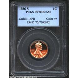 1986-S 1C PR70 Deep Cameo PCGS. A gorgeous pumpkin-orange specimen that has flawless surfaces and a.