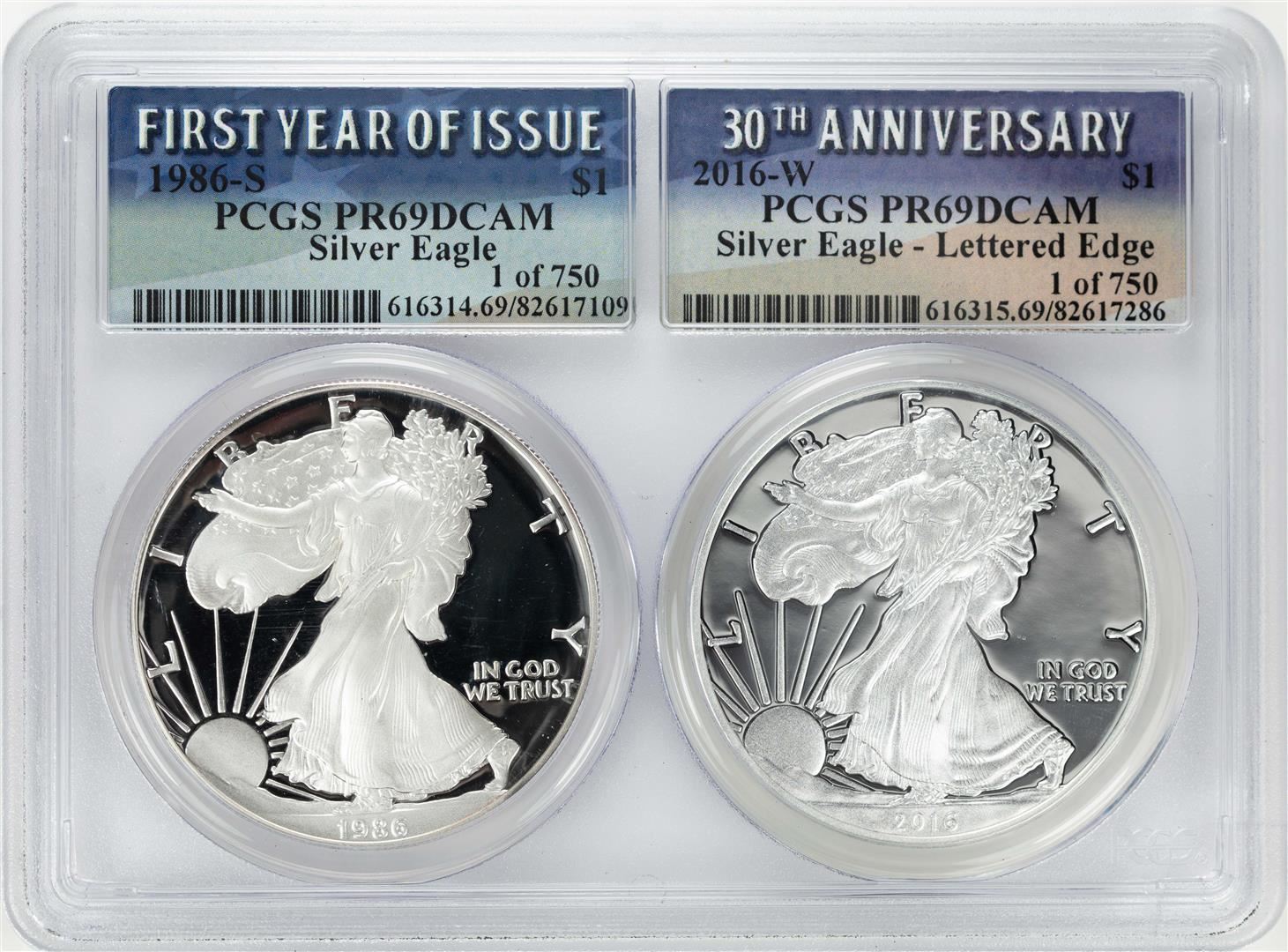 1986-S & 2016-W $1 Proof American Silver Eagle Coin Set PCGS PR69DCAM