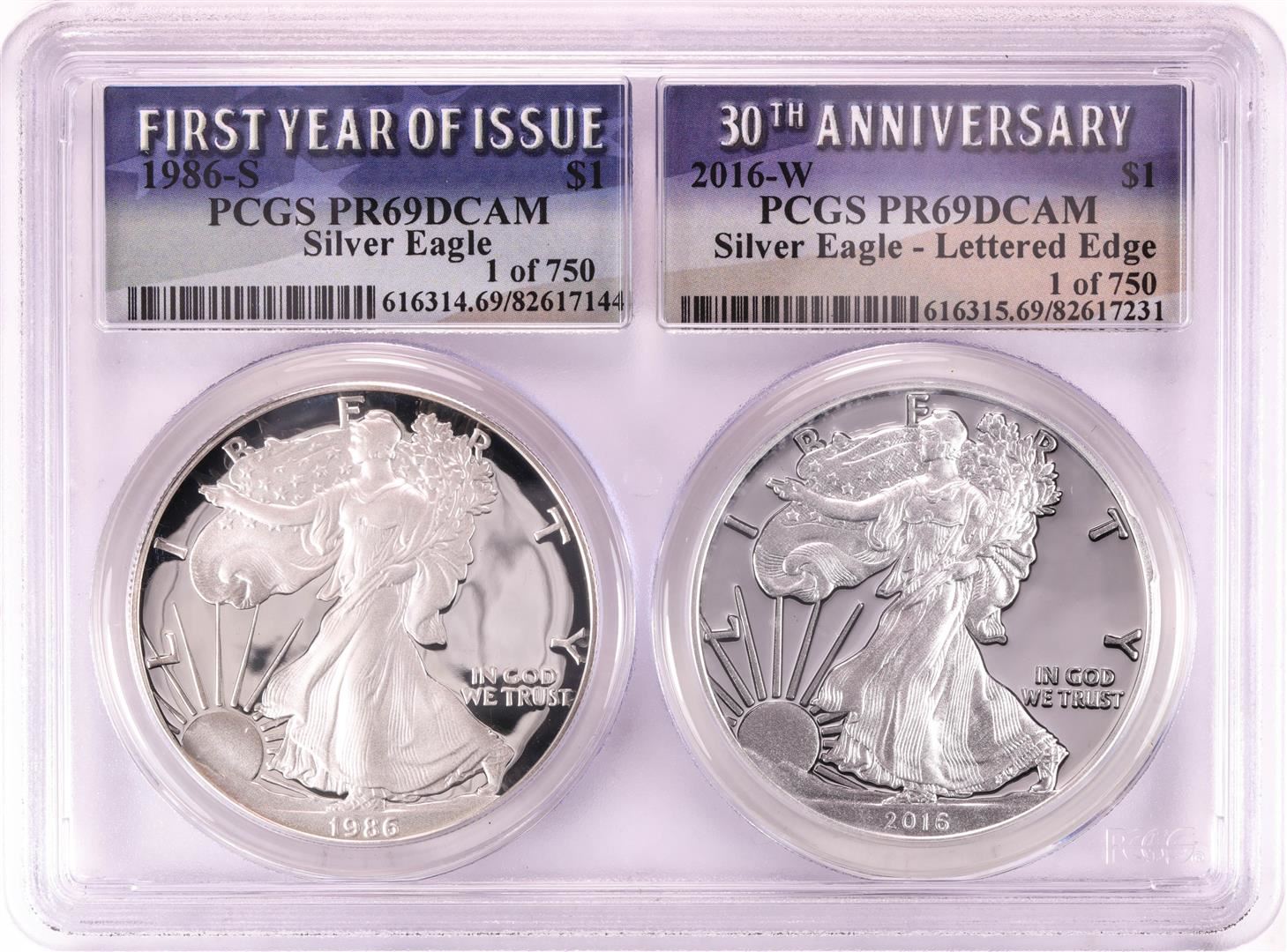 1986-S & 2016-W $1 Proof American Silver Eagle Coin Set PCGS PR69DCAM