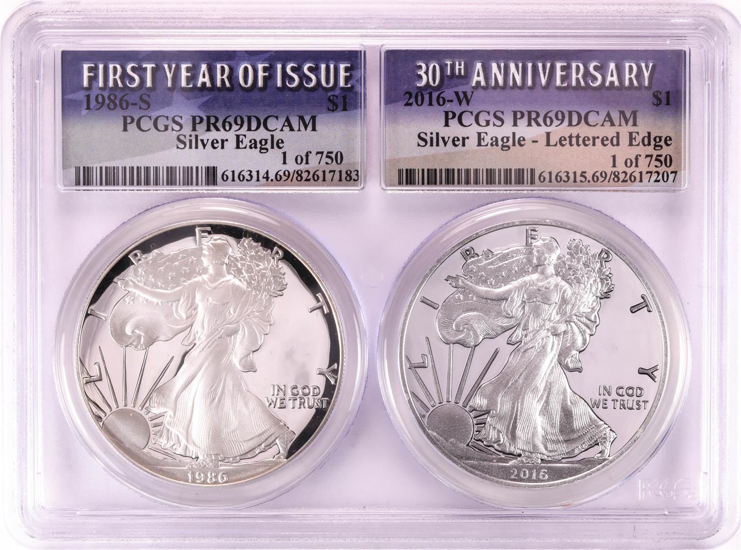 1986-S & 2016-W $1 Proof American Silver Eagle Coin Set PCGS PR69DCAM