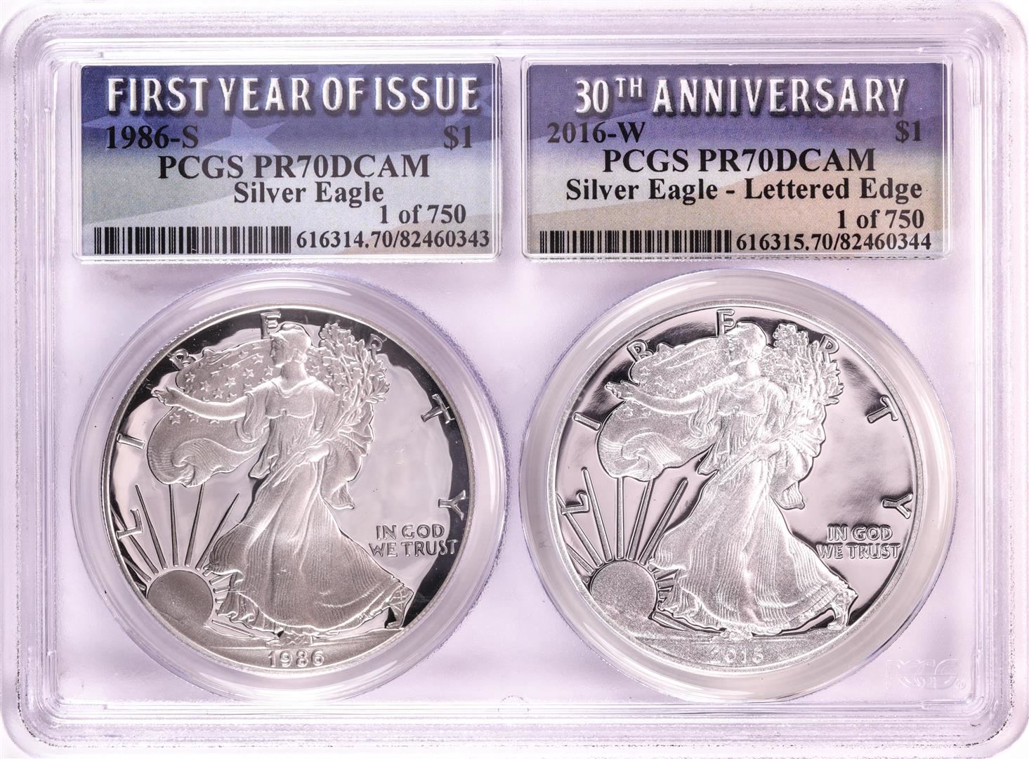 1986-S & 2016-W $1 Proof American Silver Eagle Coin Set PCGS PR70DCAM