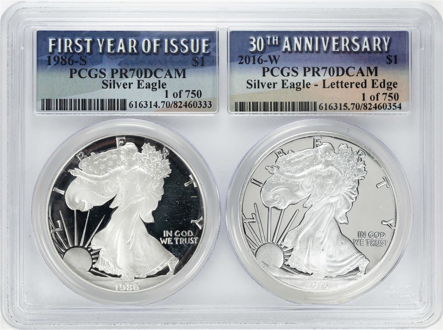 1986-S & 2016-W $1 Proof American Silver Eagle Coin Set PCGS PR70DCAM
