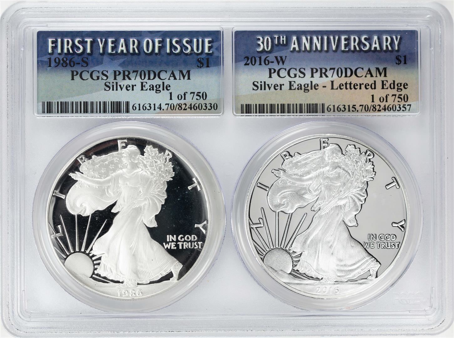 1986-S & 2016-W $1 Proof American Silver Eagle Coin Set PCGS PR70DCAM