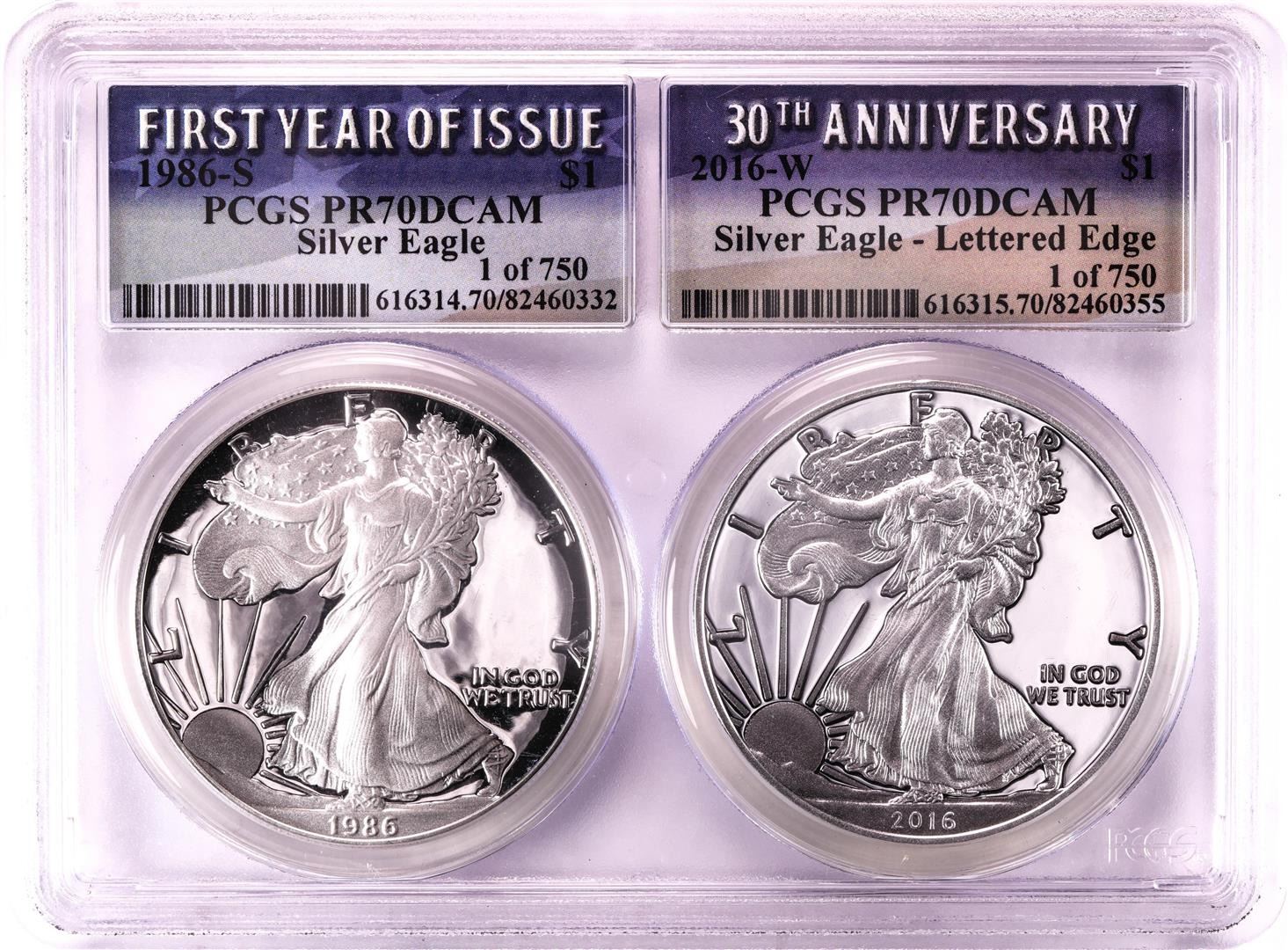 1986-S & 2016-W $1 Proof American Silver Eagle Coin Set PCGS PR70DCAM