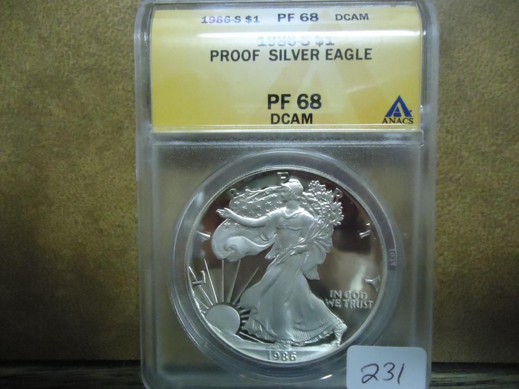 1986-S AMERICAN SILVER EAGLE ANACS PF68 DCAM
