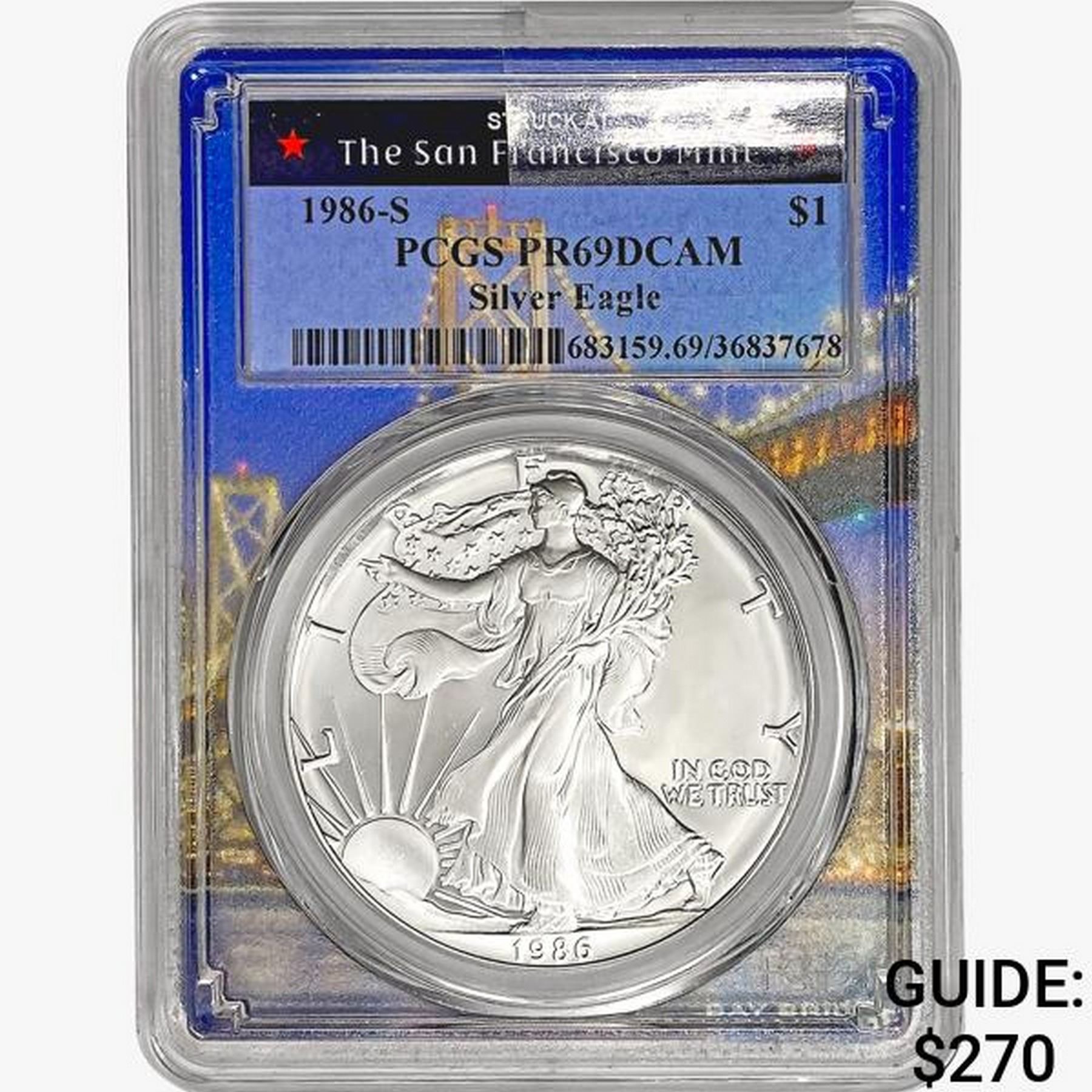 1986-S American Silver Eagle PCGS PR69 DCAM