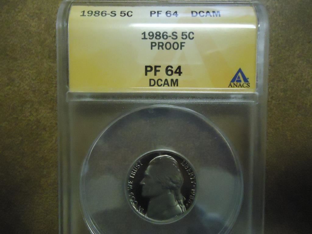 1986-S JEFFERSON NICKEL ANACS PF64 DCAM