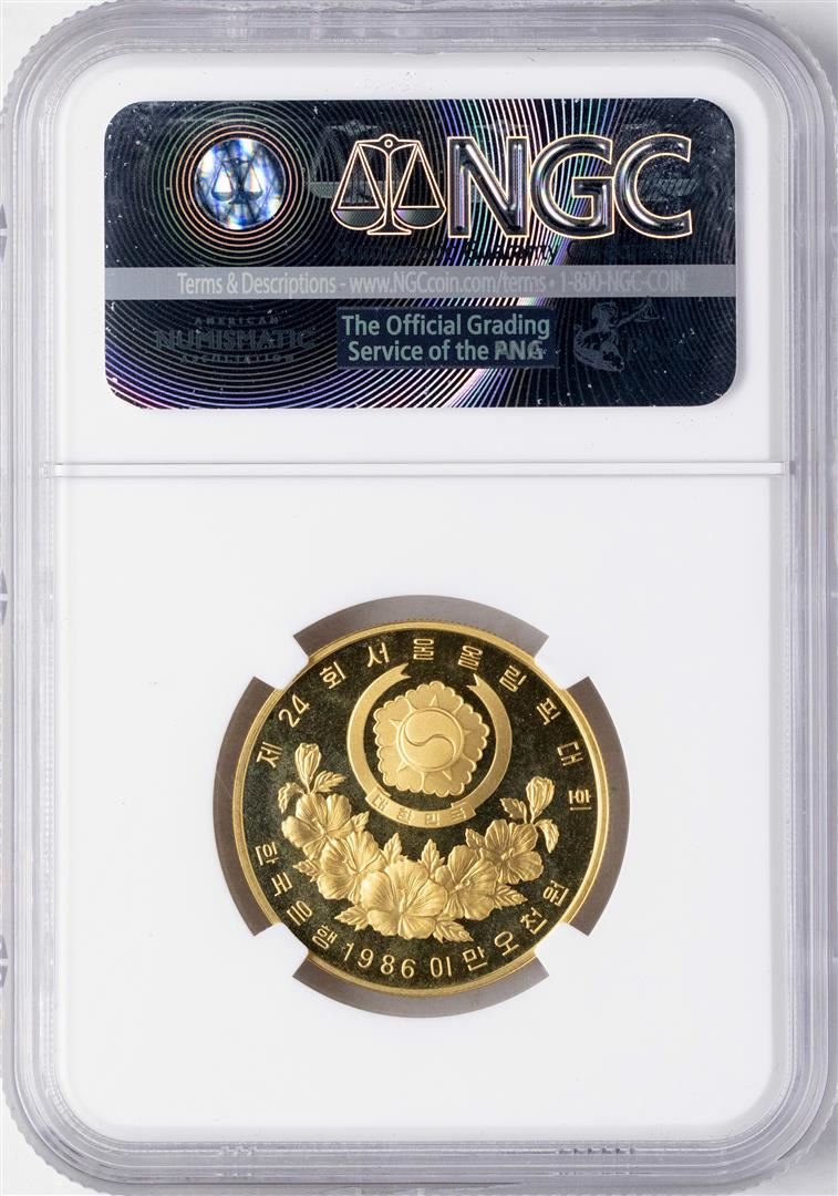 One 1986 S. Korea 25,000 Proof Won Seoul Olympics Gold Coin NGC PF67 Ultra Cameo. NGC Certified.