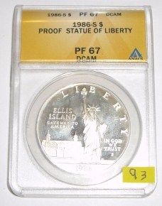 1986-S ONE DOLLAR STATUE OF LIBERTY *RARE CERTIFIED PROOF-67 DCAM BY ANACS*!! ***Coin, Currency & All Items Listed in this auction - Grades, Conditions and Values are not Safe Deposit Coins LLC Responsibilty. Grades, Condition and Values are determined by Consigner(s) & Buyers ONLY***