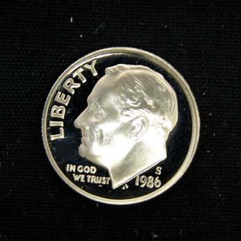 1986-S PROOF ROOSEVELT DIME - MIRROR FINISH