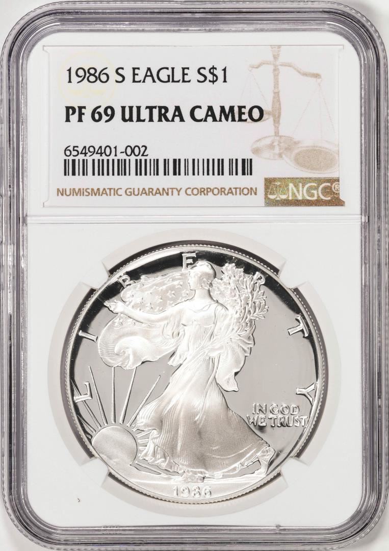 1986-S Proof $1 American Silver Eagle Coin NGC PF69 Ultra Cameo