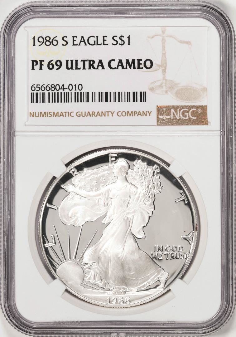 1986-S Proof $1 American Silver Eagle Coin NGC PF69 Ultra Cameo