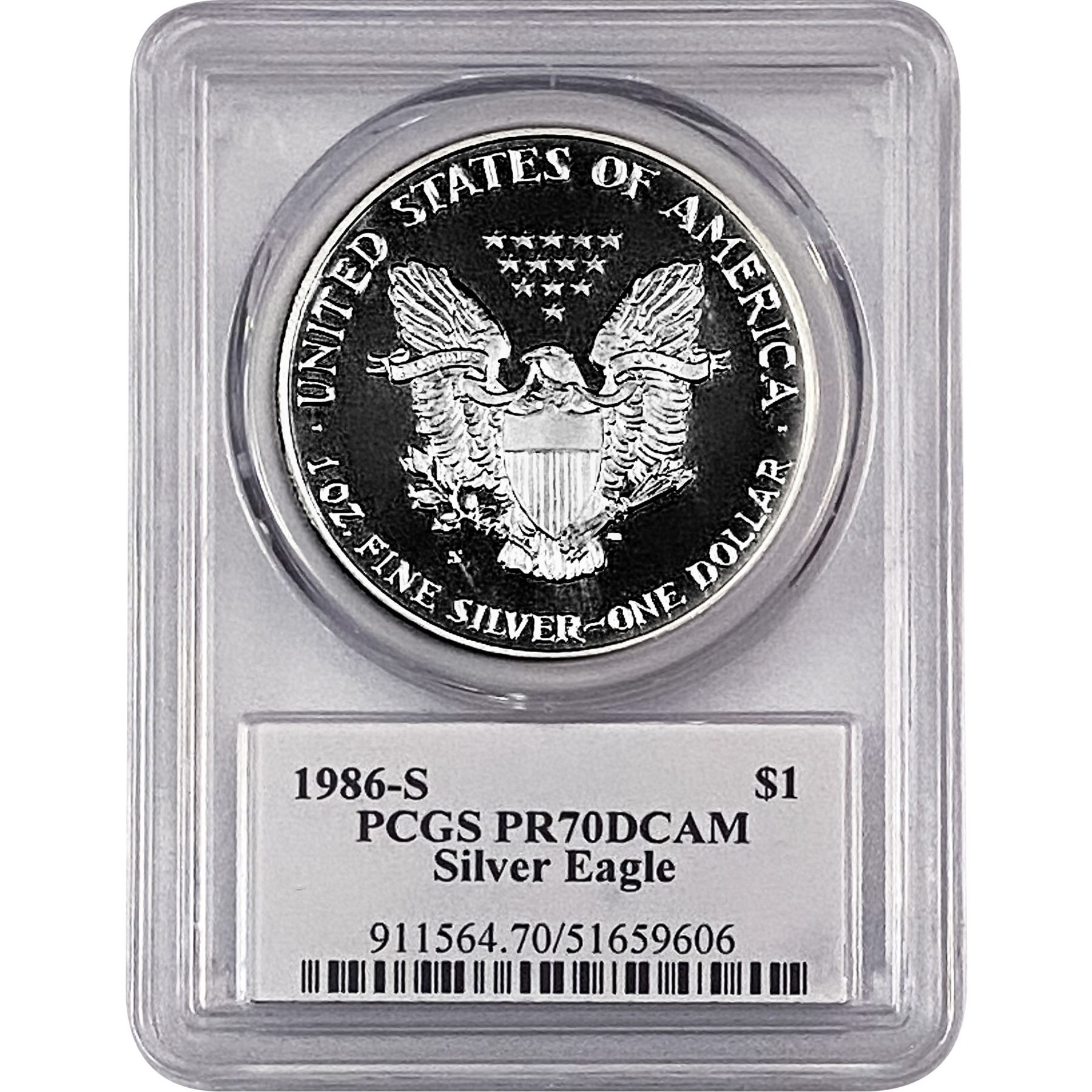 1986-S Silver Eagle PCGS PR70 DCAM Thomas D Rogers