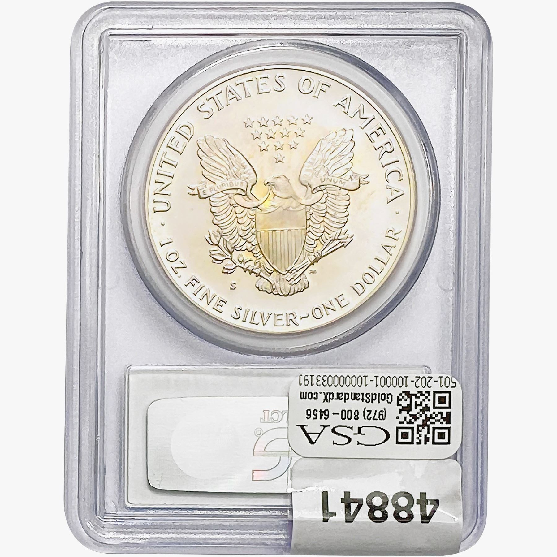 e. Coins sold referencing a third-party grading service are sold “AS IS” without any express or implied warranty, except for a guarantee by GSA that they are genuine. Removal or alteration of the holder, voids all of Bidder’s claims concerning that Product. Certain warranties may be available from the grading services and Bidders are referred to them for further details: Numismatic Guaranty Corporation (NGC), PO Box 4776, Sarasota, FL 34230, www.ngccoin.com/services/writtenguarantee.asp; Professional Coin Grading Services (PCGS), PO Box 9458, Newport Beach, CA 92658, www.pcgs.com/guarantee.html; ANACS, 6555 S. Kenton St., Ste. 303, Englewood, CO 80111; and Independent Coin Grading Co. (ICG), 7901 East Bellview, Ave., Suite 50, Englewood, CO 80111.