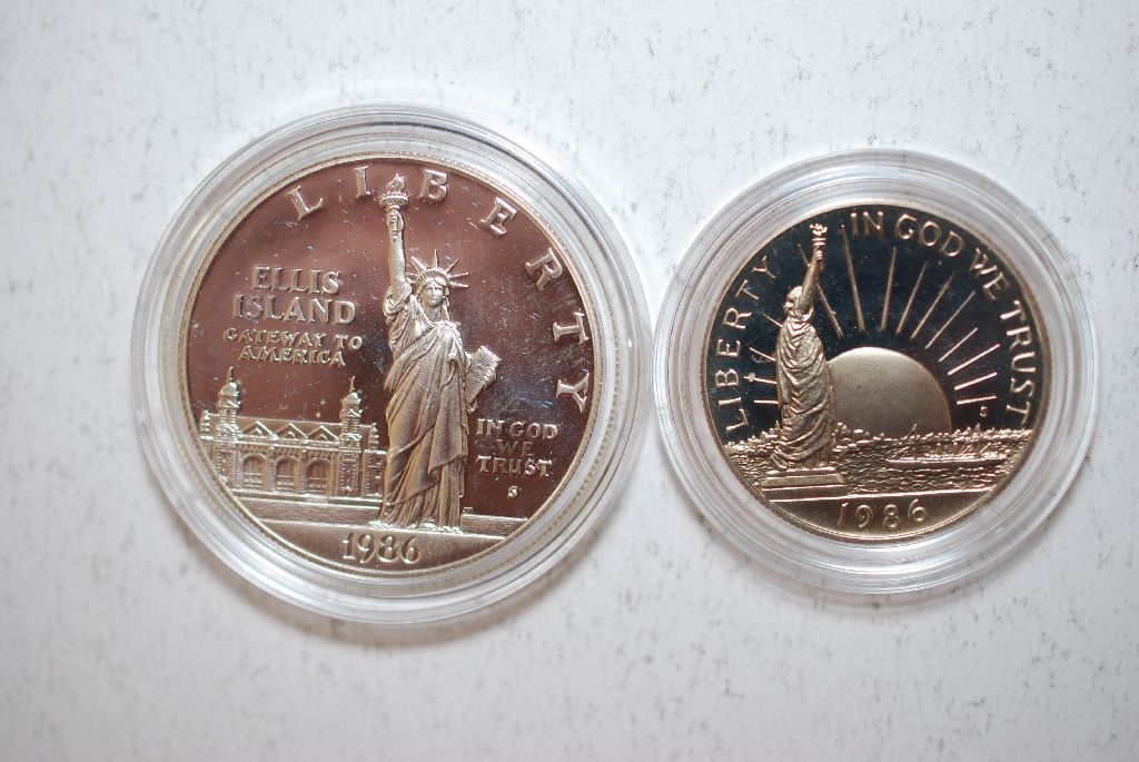 1986-S US Liberty Commemorative Two-Coin Proof Set In Velvet Box; Ellis Island $1 & Nation Of Immigrant Half Dollar; EST. $35-45