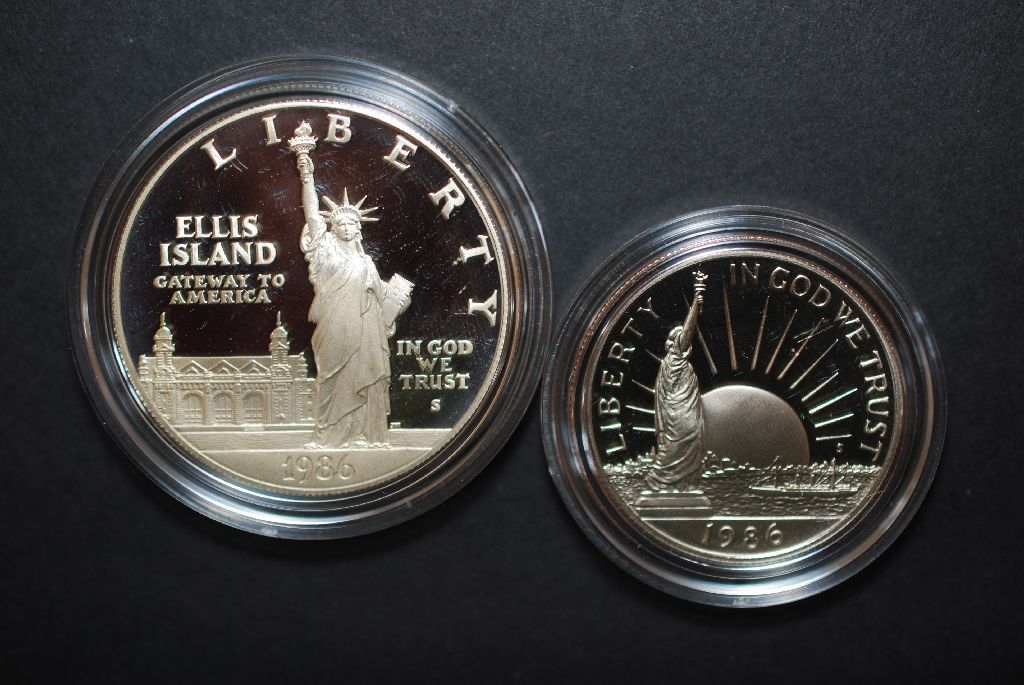 1986-S US Liberty Commemorative Two-Coin Proof Set In Velvet Box; Ellis Island $1 & Nation Of Immigrant Half Dollar; EST. $30-40