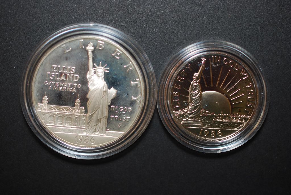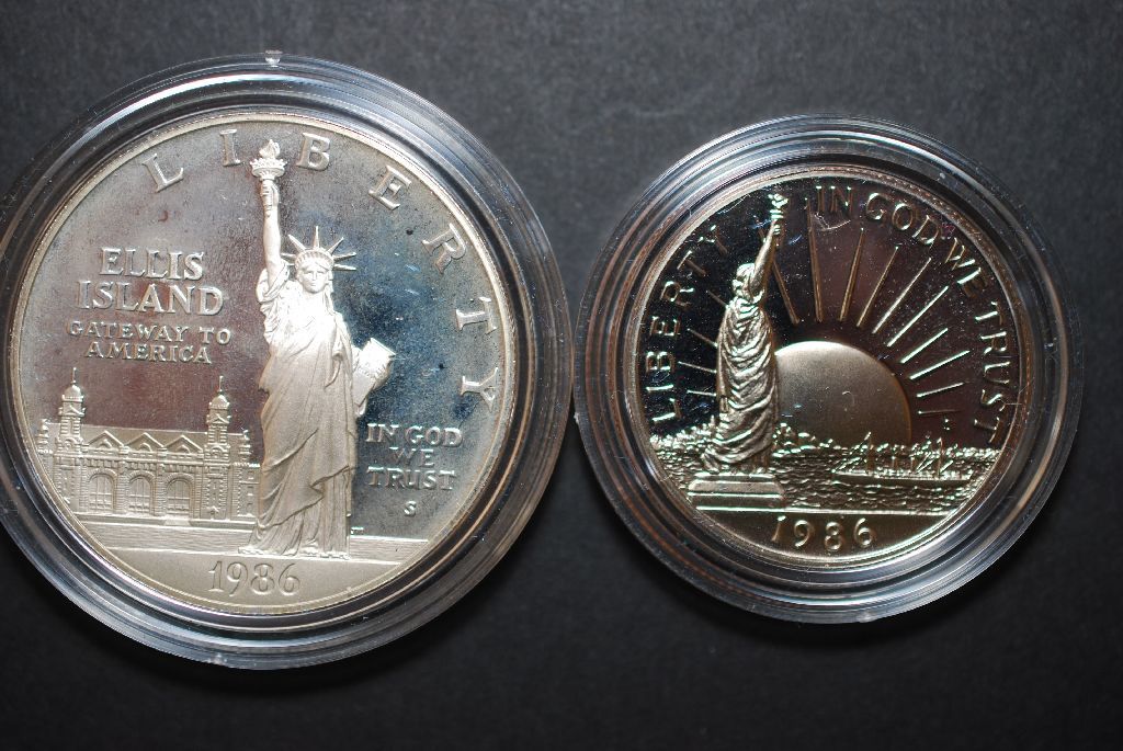 1986-S US Liberty Commemorative Two-Coin Proof Set In Velvet Box; Ellis Island $1 & Nation Of Immigrant Half Dollar; EST. $30-40