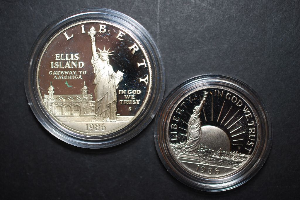 1986-S US Liberty Commemorative Two-Coin Proof Set In Velvet Box; Ellis Island $1 & Nation Of Immigrant Half Dollar; EST. $40-60