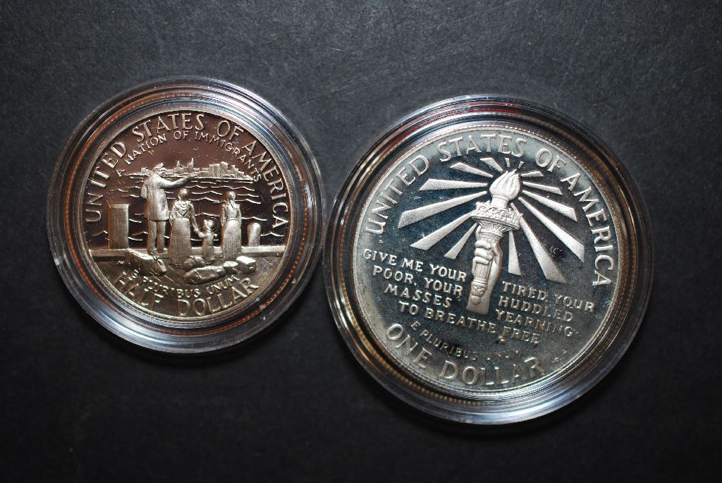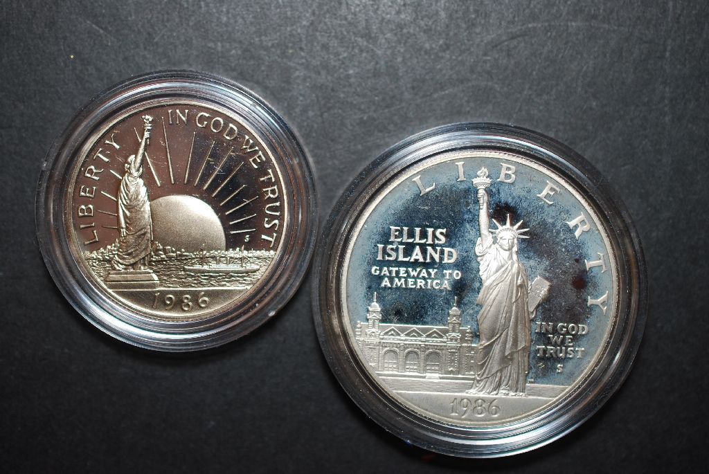 1986-S US Liberty Commemorative Two-Coin Proof Set In Velvet Box; Ellis Island $1 & Nation Of Immigrant Half Dollar; EST. $40-50