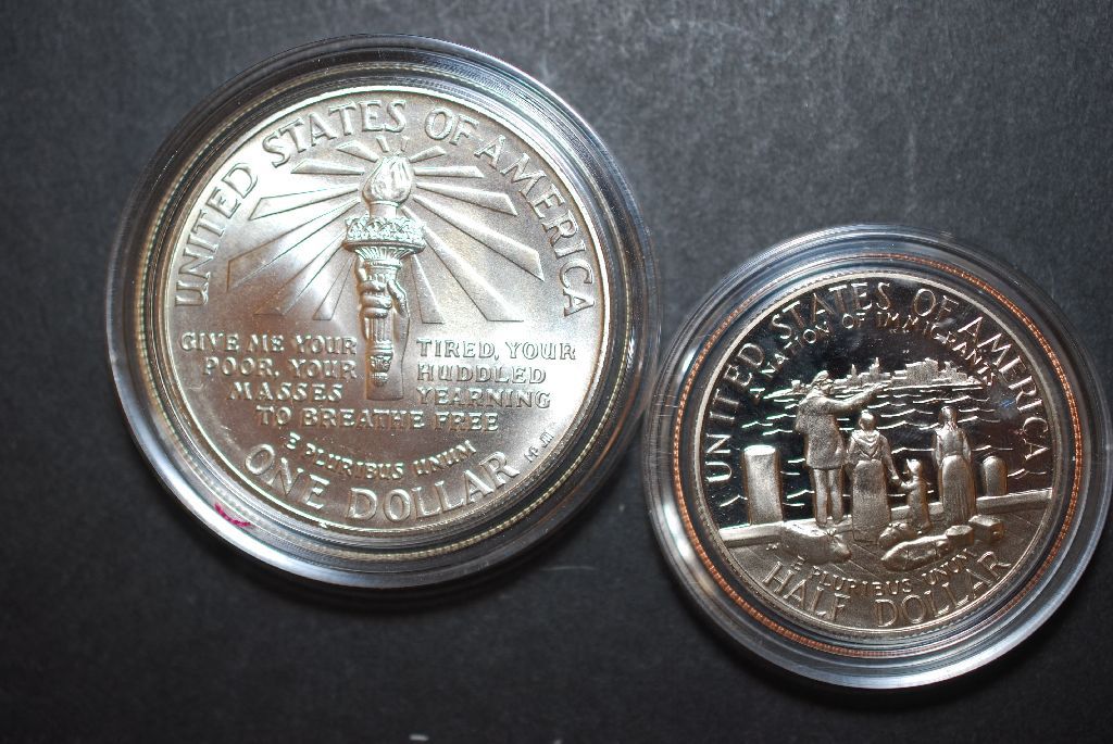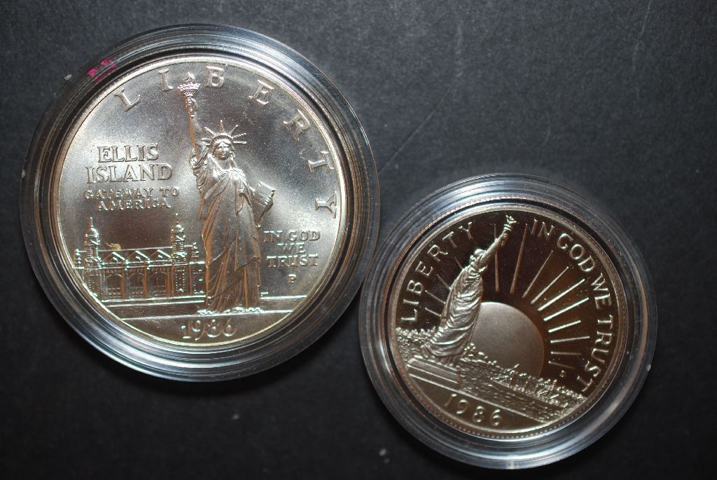 1986-S US Liberty Commemorative Two-Coin Proof Set In Velvet Box; Ellis Island $1 & Nation Of Immigrant Half; Lot of 2 Coins; EST. $30-50