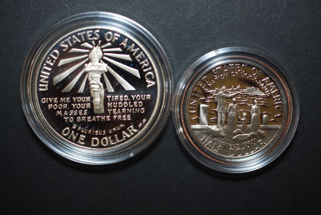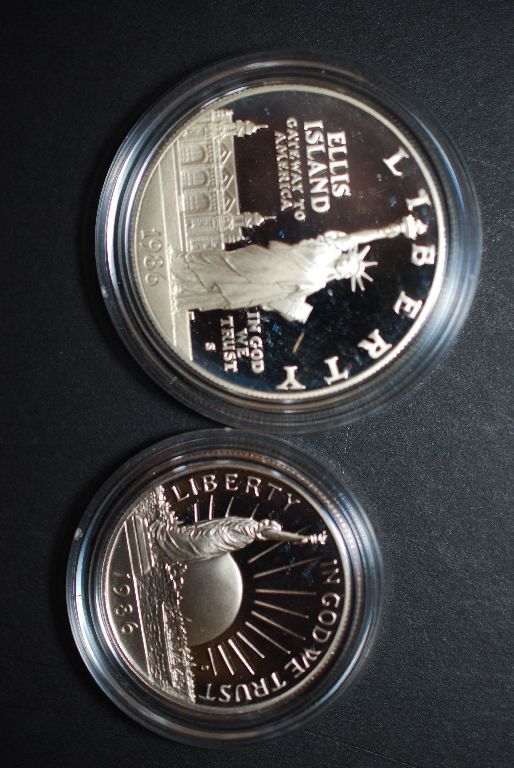 1986-S US Liberty Commemorative Two-Coin Proof Set In Velvet Box; Ellis Island $1 & Nation Of Immigrant Half Dollar; EST. $30-40