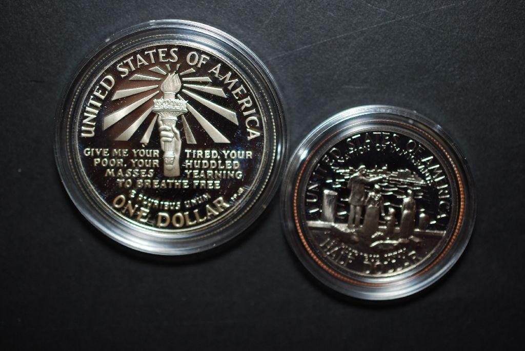 1986-S US Liberty Commemorative Two-Coin Proof Set In Velvet Box; Ellis Island Silver $1 & Nation Of Immigrant Half Dollar; EST. $40-50