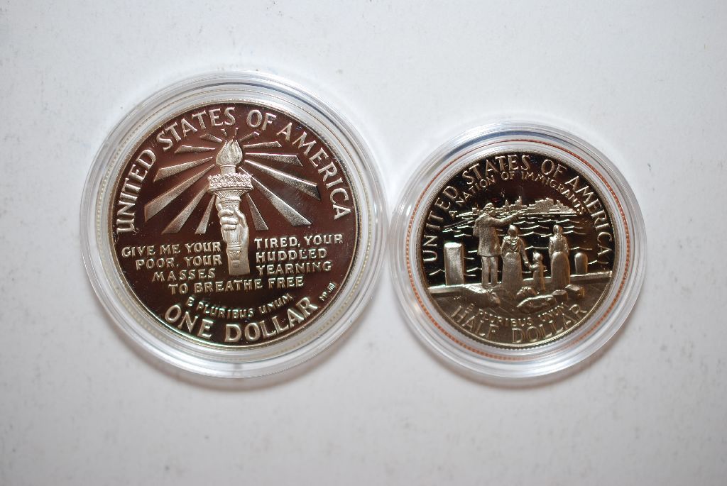 1986-S US Liberty Two-Coin Proof Set In Velvet Box; Ellis Island Commemorative $1 Silver Proof & Nation Of Immigrant Commemorative Half Dollar Proof; EST. $40-50
