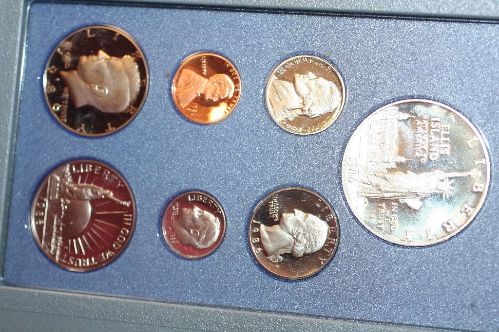 1986-S US Mint Prestige Proof Set W/Commerative Ellis Island Half Dollar & Commerative $1 Coin