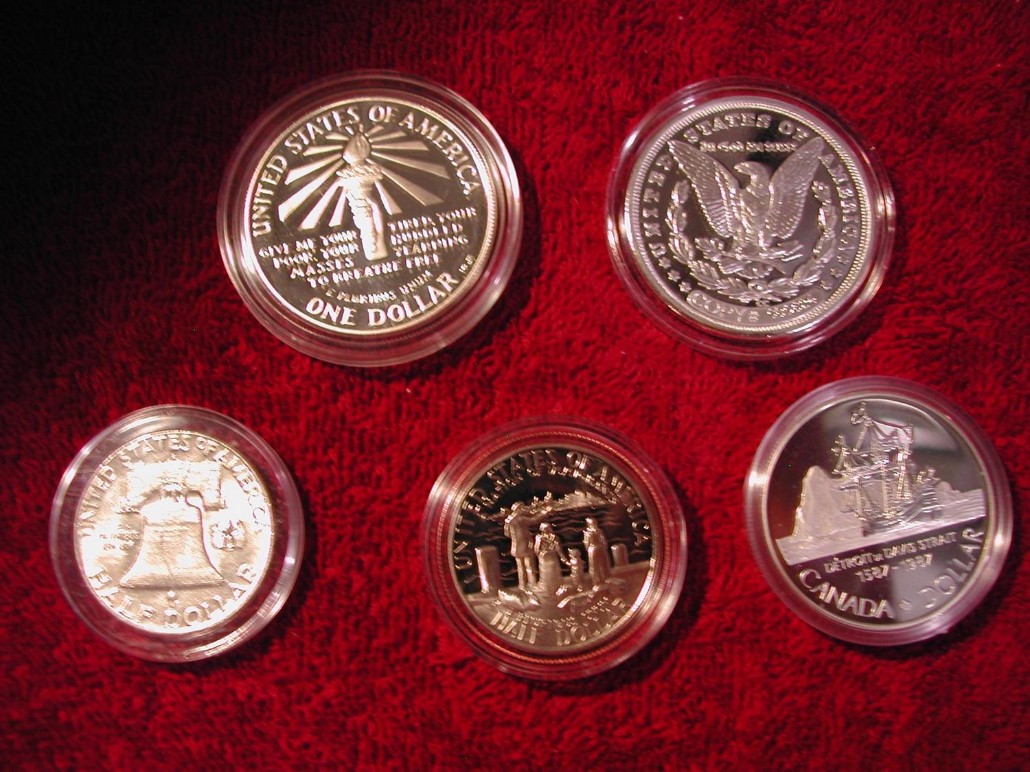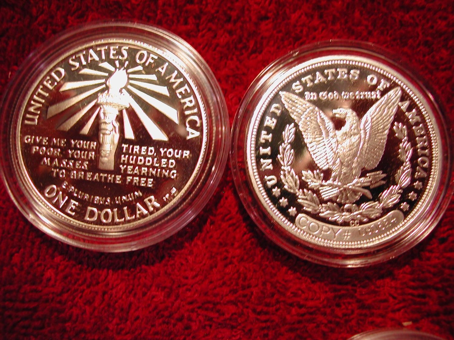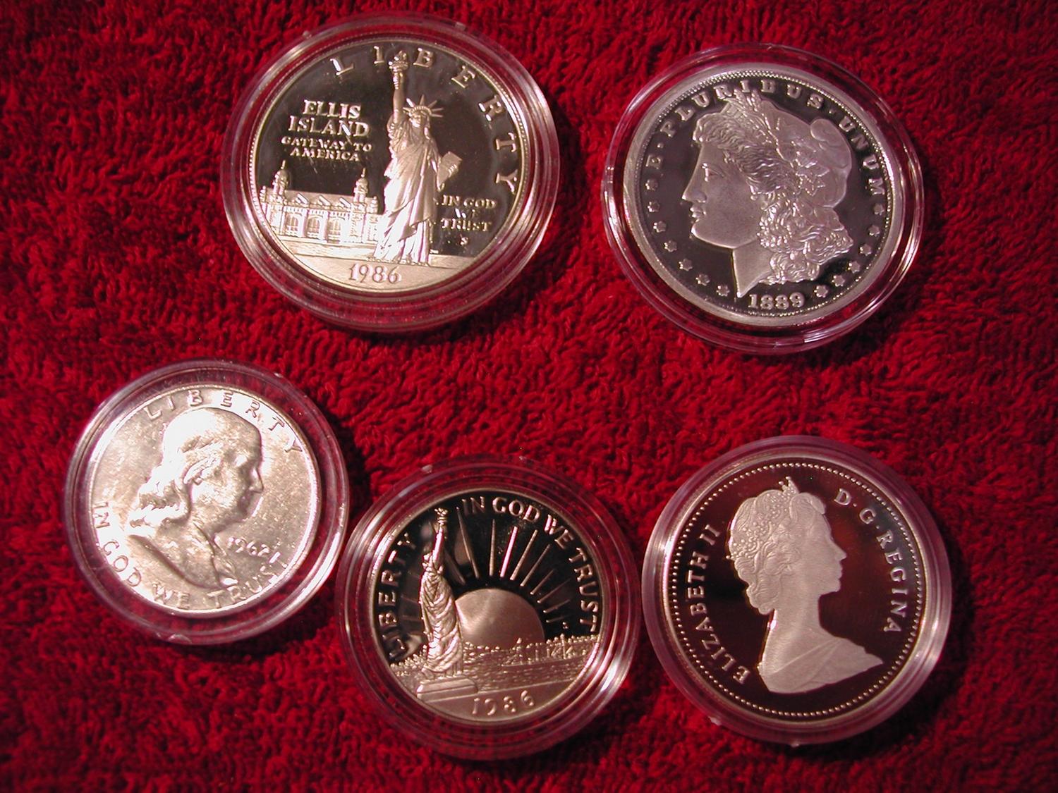 1986 SILVER PROOF LIBERTY HALF, 1987 CANADIAN SILVER PROOF, 1986 SILVER PROOF LIBERTY DOLLAR, COPY
