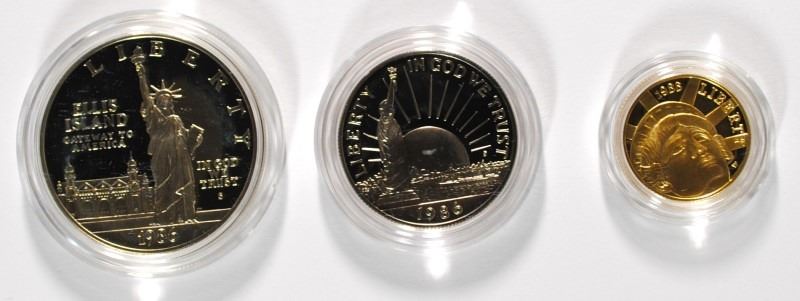 1986 STATUE OF LIBERTY 3-PIECE Pf COMMEM SET: $5 GOLD, SILVER DOLLAR & CLAD HALF