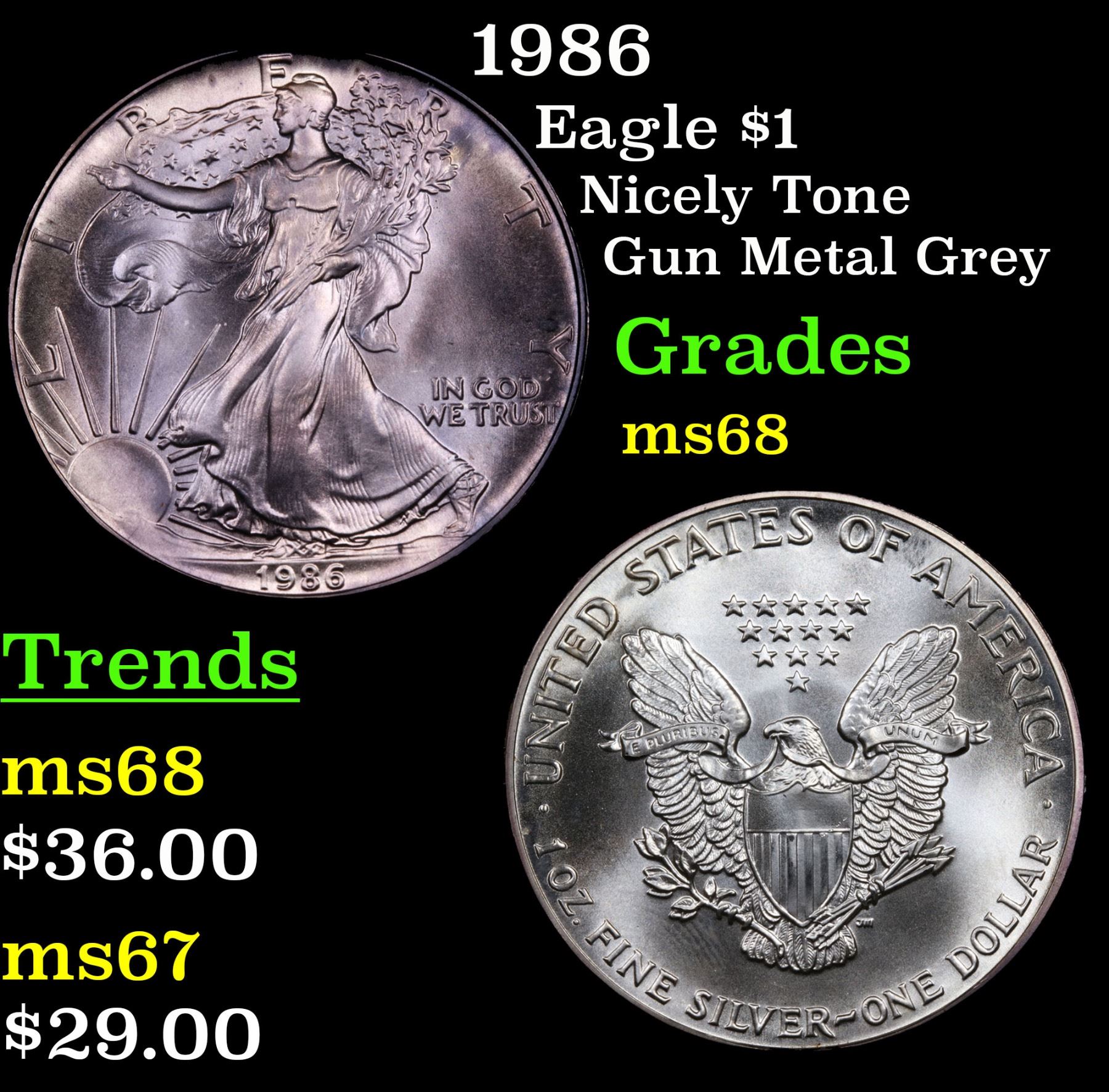 1986 Silver Eagle Dollar $1 Grades GEM+++ Unc.