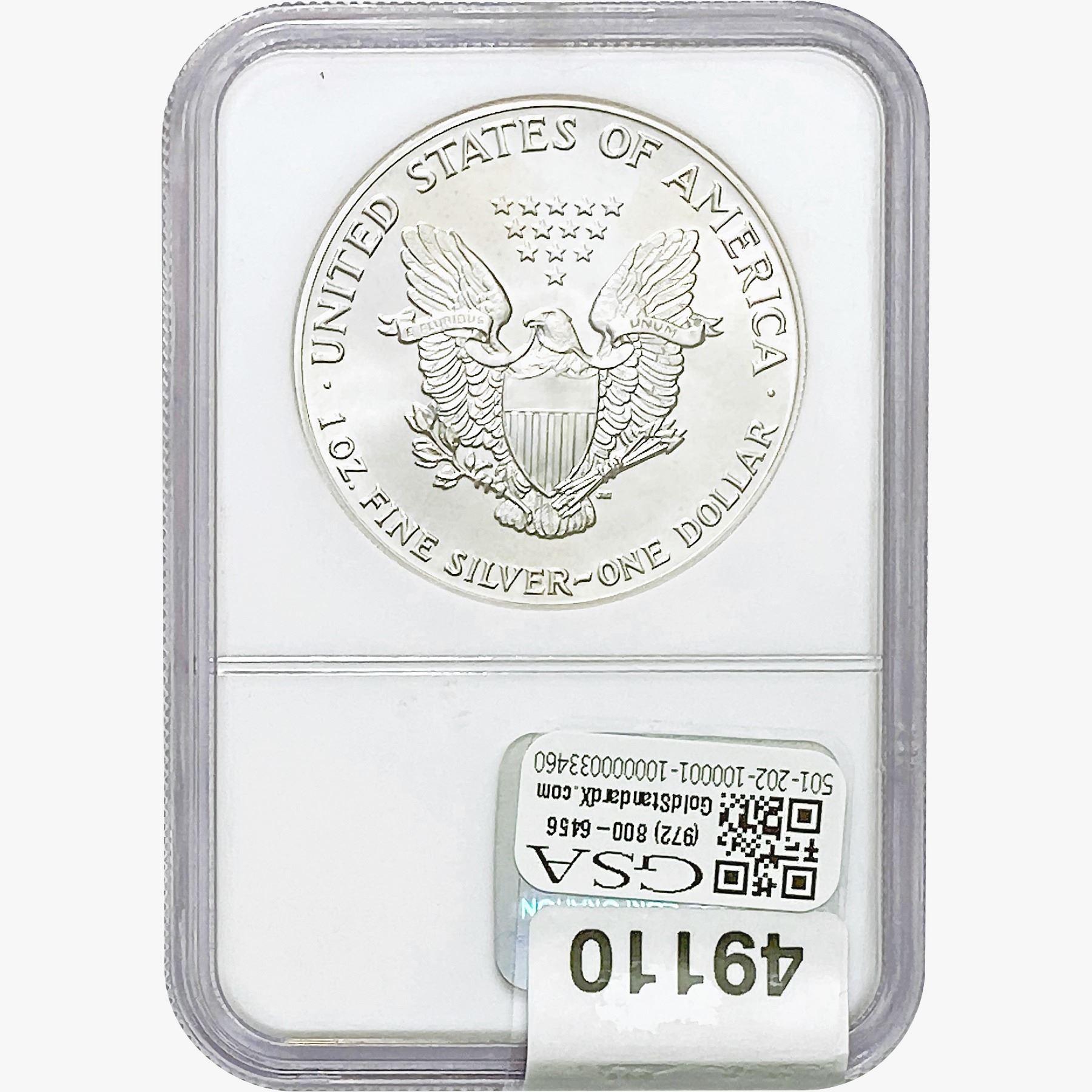 e. Coins sold referencing a third-party grading service are sold “AS IS” without any express or implied warranty, except for a guarantee by GSA that they are genuine. Removal or alteration of the holder, voids all of Bidder’s claims concerning that Product. Certain warranties may be available from the grading services and Bidders are referred to them for further details: Numismatic Guaranty Corporation (NGC), PO Box 4776, Sarasota, FL 34230, www.ngccoin.com/services/writtenguarantee.asp; Professional Coin Grading Services (PCGS), PO Box 9458, Newport Beach, CA 92658, www.pcgs.com/guarantee.html; ANACS, 6555 S. Kenton St., Ste. 303, Englewood, CO 80111; and Independent Coin Grading Co. (ICG), 7901 East Bellview, Ave., Suite 50, Englewood, CO 80111.