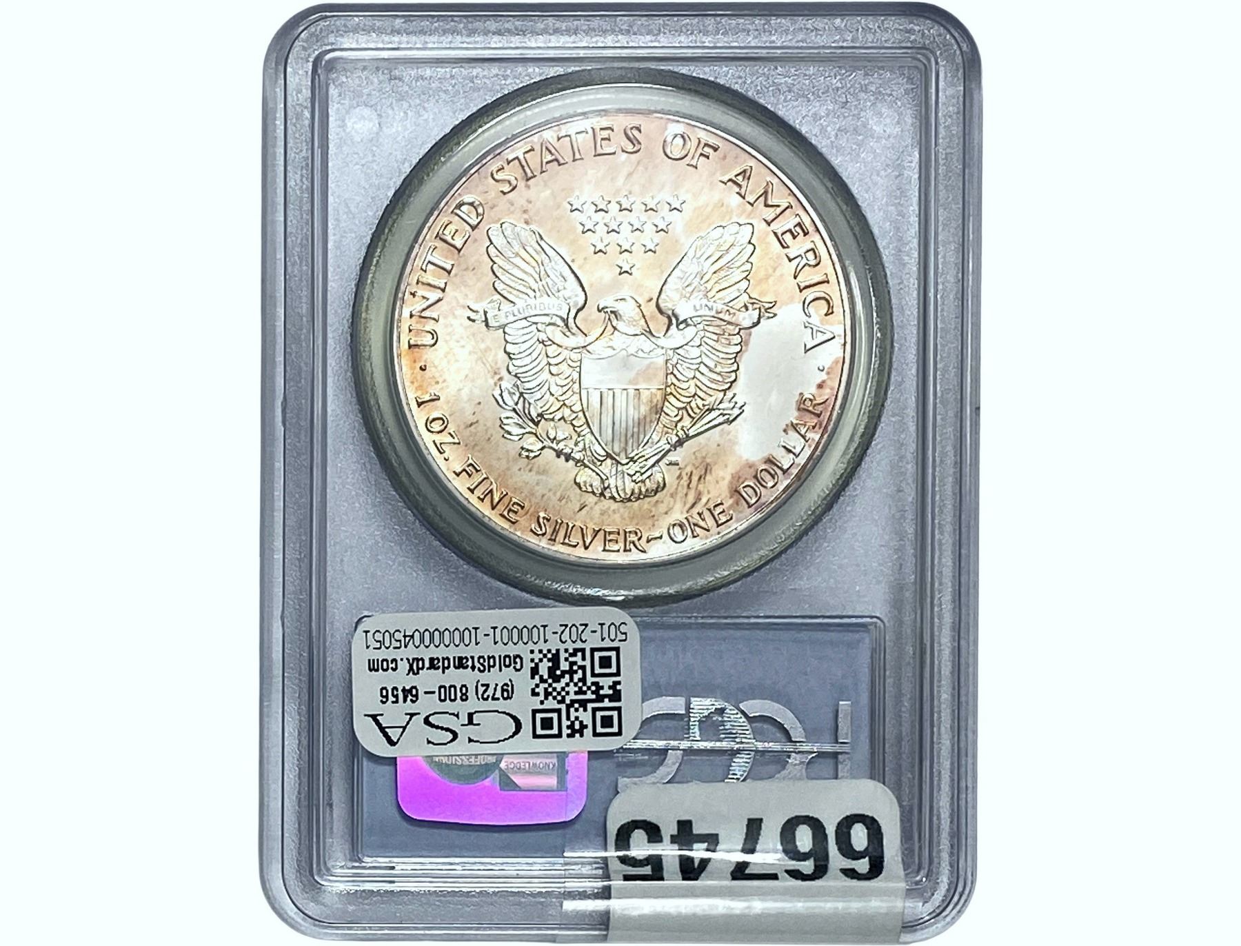 e. Coins sold referencing a third-party grading service are sold “AS IS” without any express or implied warranty, except for a guarantee by GSA that they are genuine. Removal or alteration of the holder, voids all of Bidder’s claims concerning that Product. Certain warranties may be available from the grading services and Bidders are referred to them for further details: Numismatic Guaranty Corporation (NGC), PO Box 4776, Sarasota, FL 34230, www.ngccoin.com/services/writtenguarantee.asp; Professional Coin Grading Services (PCGS), PO Box 9458, Newport Beach, CA 92658, www.pcgs.com/guarantee.html; ANACS, 6555 S. Kenton St., Ste. 303, Englewood, CO 80111; and Independent Coin Grading Co. (ICG), 7901 East Bellview, Ave., Suite 50, Englewood, CO 80111.