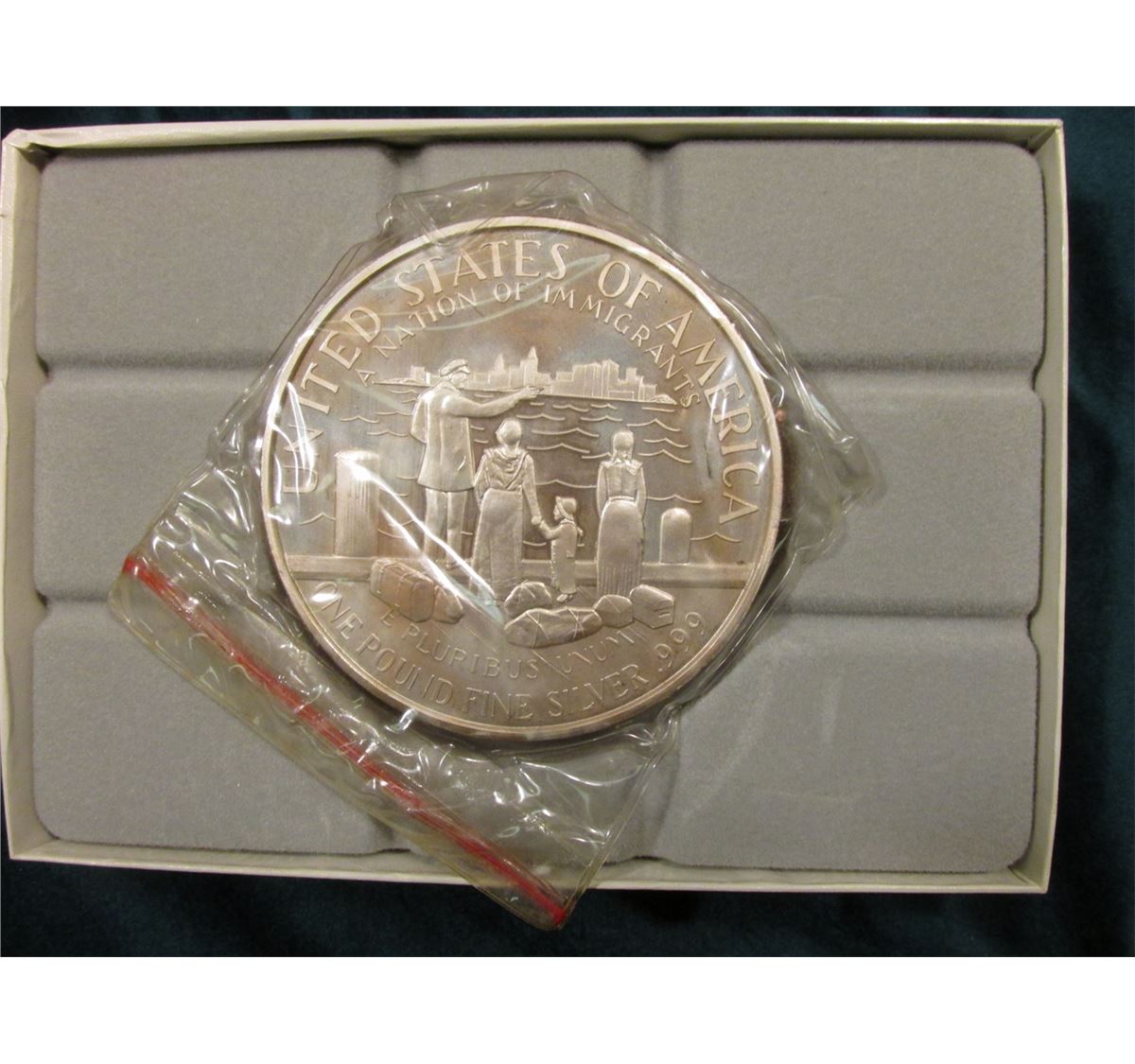 1986 Statue of Liberty "One Pound Fine Silver .999", In original felt-lined box of issue.