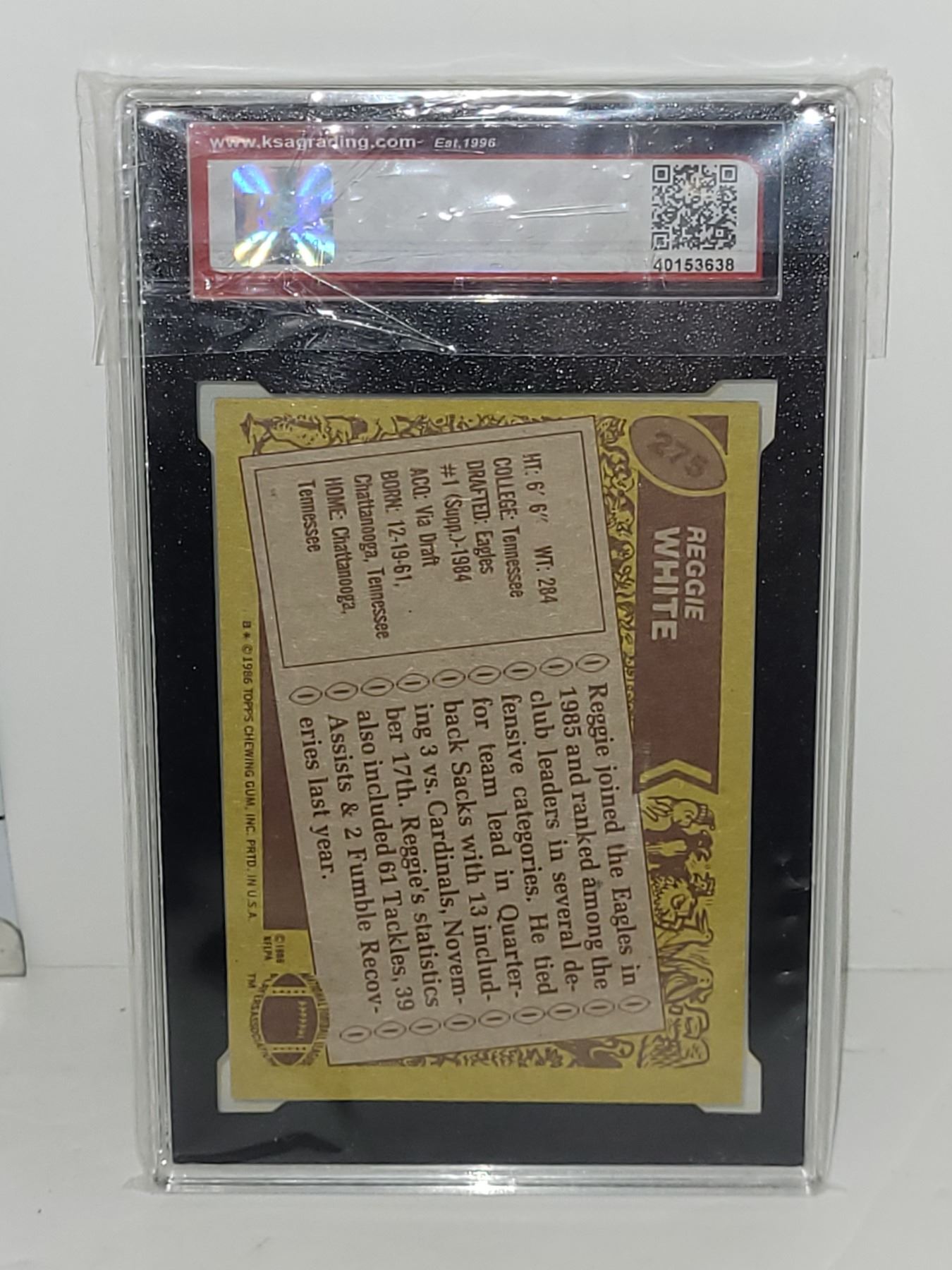 1986 Topps Rookie Card Reggie White Graded 7.5