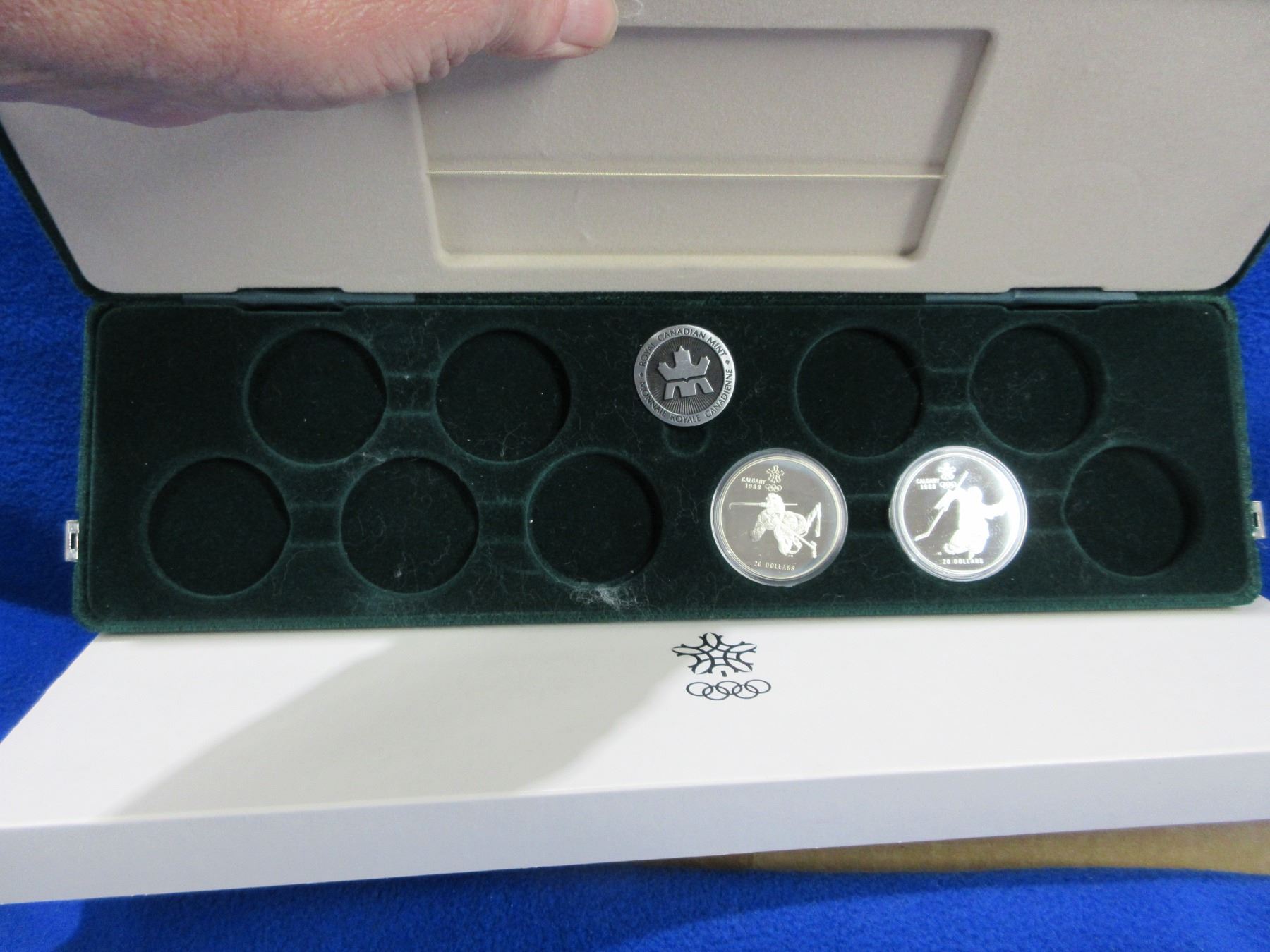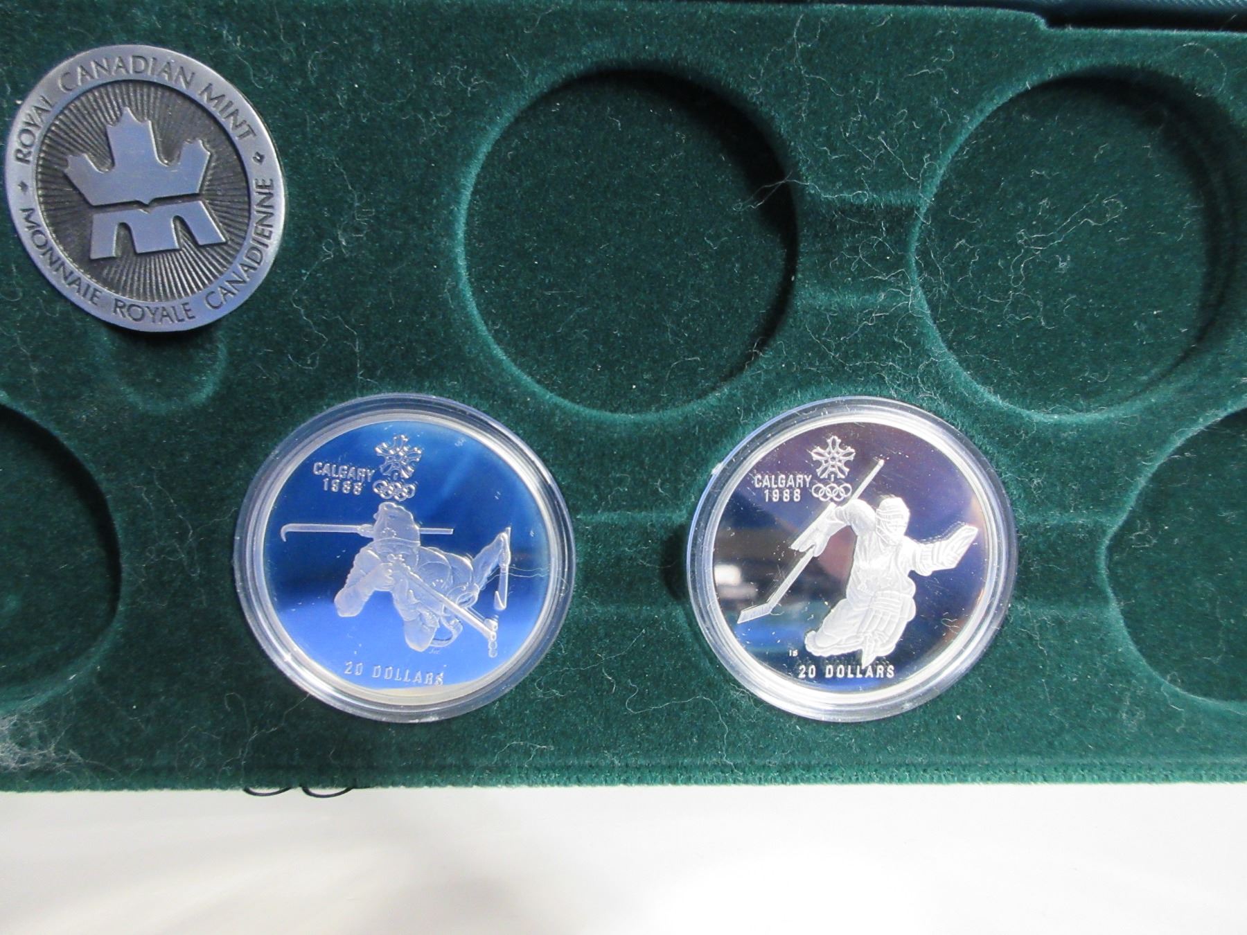 1986 Two $20 Coin Proof Set - 1988 Calgary Olympics - .925 Silver - Biathlon + Hockey - In Display Case