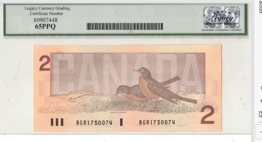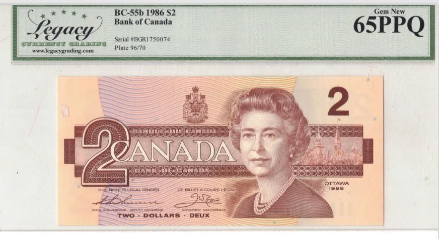 1986 Two Dollar Bank Note , Bank of Canada 65 PPQ