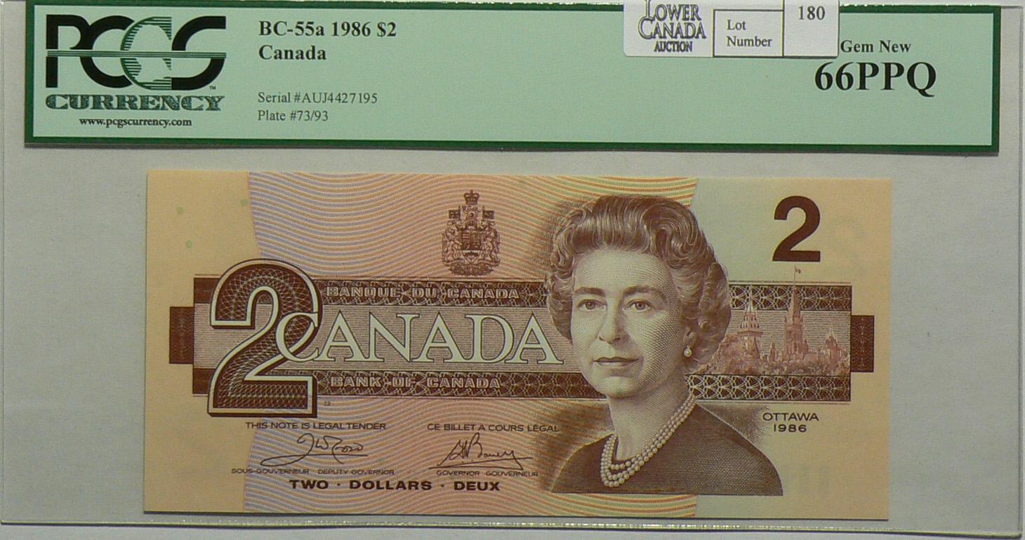 1986 Two Dollars, BC-55a, PCGS UNC-66 PPQ, Crow Bouey, serial AUJ4427195.