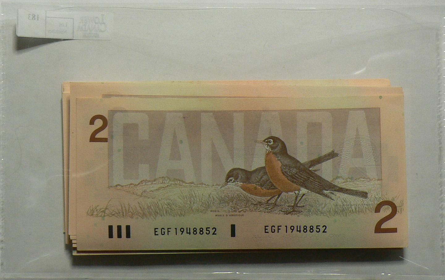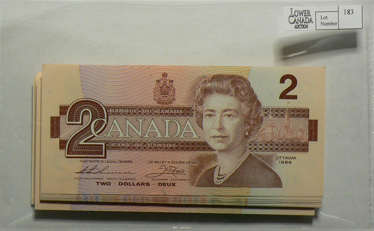 1986 Two Dollars Bundle, BC-55b, UNC, Thiessen Crow, serial EGF1948852 to EGF1948932. Lot of 81 n
